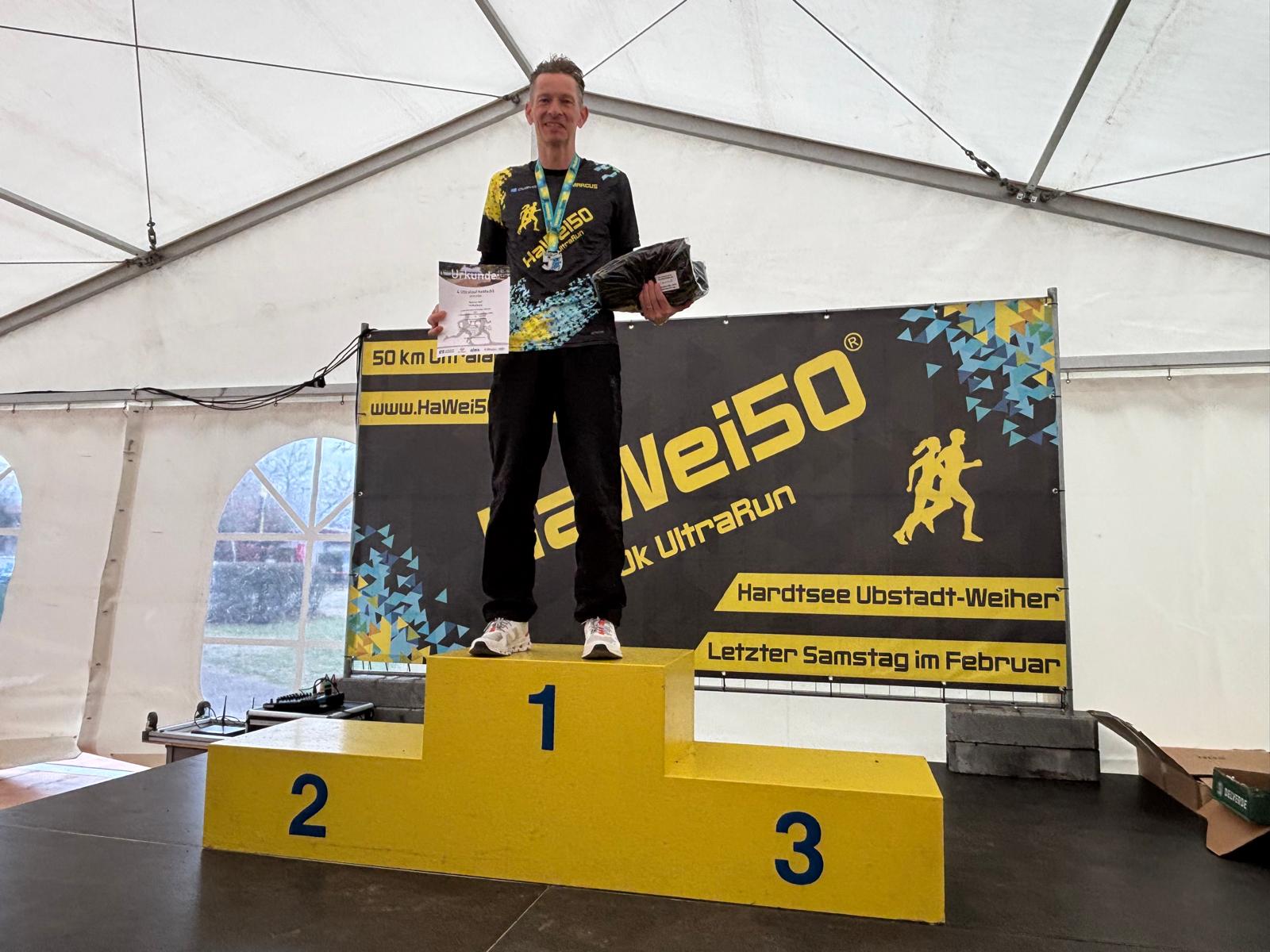 Da ich in rund vier Wochen einen Marathon in Luxemburg laufen werde, entschloss ich mich im Aufbautraining den Weinstraßen – Halbmarathon zu laufen. Ziel war eigentlich unter 1:25 Stunden zu laufen - Ergebnis war letztendlich 1:25:41 Stunden. Es reichte dennoch zum Sieg der AK 55. Meinen Nachbar, Martin Postel, der sich auf einen Ironman in den Pyrenäen vorbereitet, konnte ich doch deutlich distanzieren.